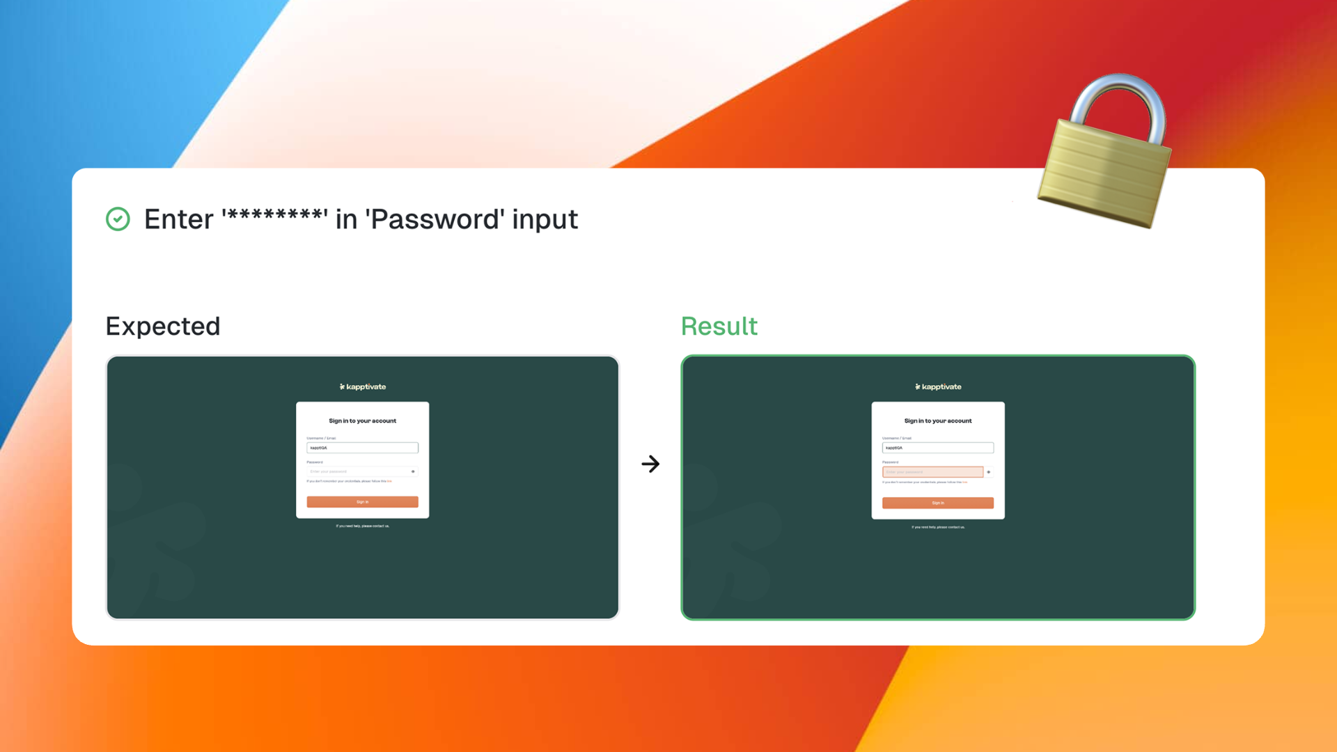 Insert variables and secrets directly inside step inputs, assertions and conditions, making tests easier to maintain and adapt.