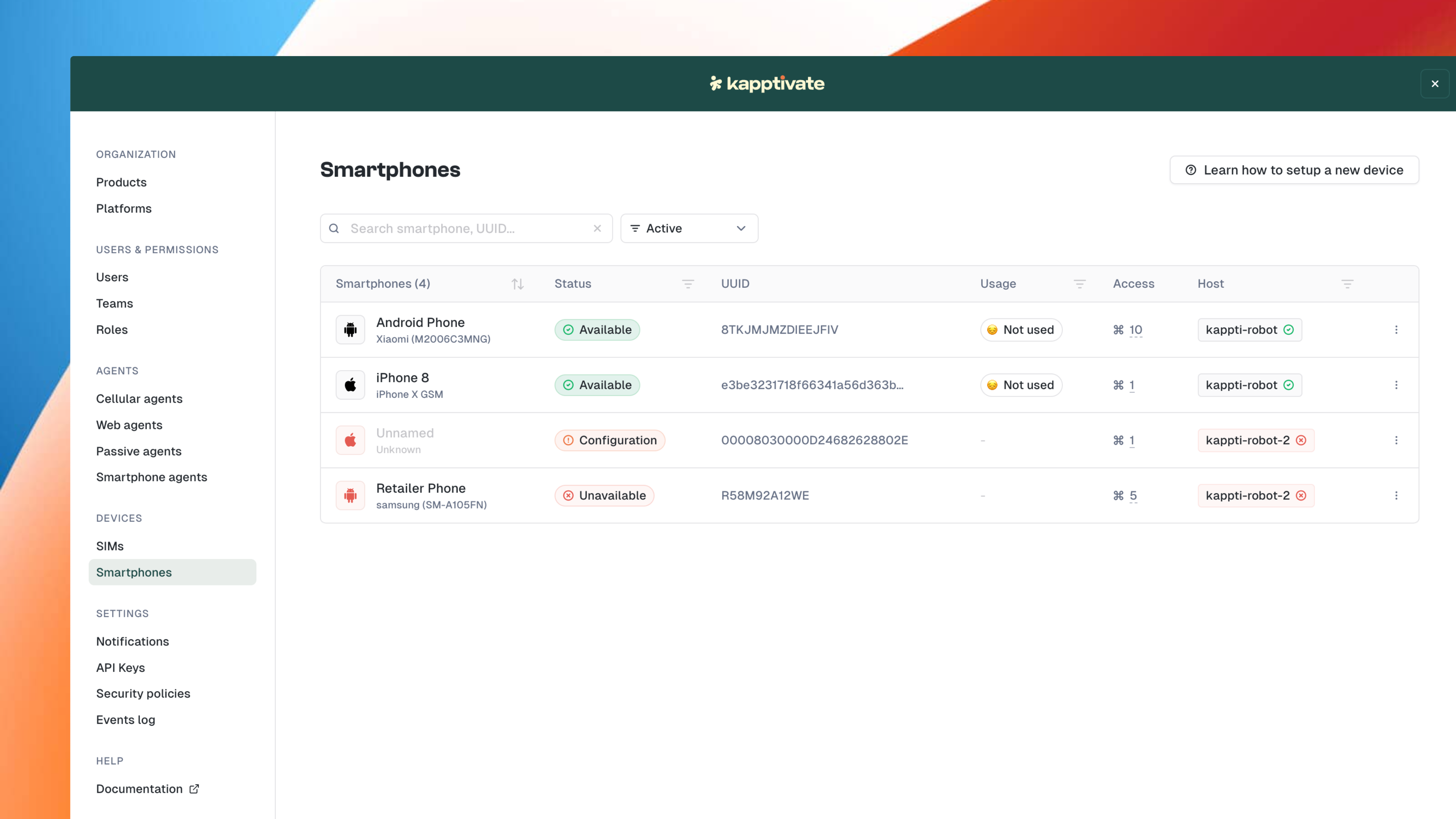 Nous avons redesigné la page de la liste des SIMs ainsi que celle des smartphones dans l'administration afin d'améliorer l'expérience de l'utilisateur.